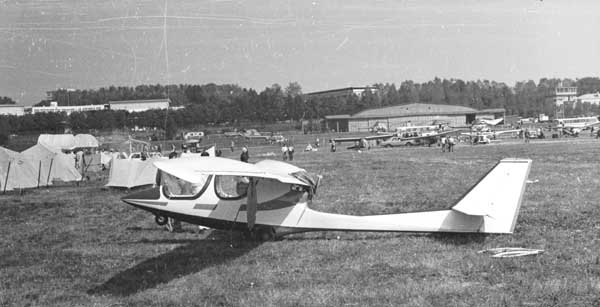 Scan37.jpg - «Пеликан», учебный планер, изготовлен по оригинальной технологии намоткой стеклопластиковой нити. Неплохо летал, но почти во всём уступил «Воробышку». Видел его года 2 тому на аэродроме «Черноголовка».