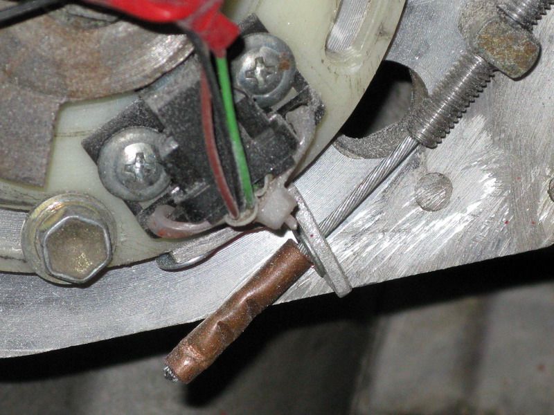 В идеале угол опережения зажигания- сложная и далеко нелинейная функция трех аргументов. Текущие обороты, нагрузка (по вакууму), температура двигателя. Даже в штатном процессоре имеется 2 карты прошивки по температуре- до 65 град и после. Учитывая, что на непрогретом двигателе взлетать дураков нет, оптимальным было бы реализация рабочей прошивки управления тросиком опережения. Не видно к чему крепится тросик в карбах, но такое "ручное" управление опережением вижу впервые. Центробежный и вакуумный регуляторы хоть и относительно линейны, но дают более менее приемлемый результат (92- 95% мощности). В данном случае возможно опытным путем подобрать угол для max оборотов 100% мощности и не бояться, что сработает ограничитель. Так же и с крейсерским режимом с элементами автоматики тросика при переходе с одного режима на другой. В этом большой + такого тех. решения.