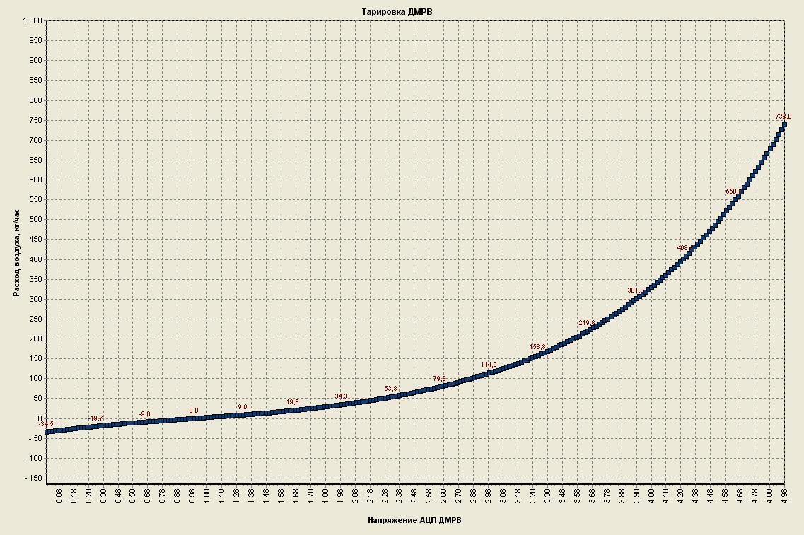 Сергей тут Вы не правы. Так выглядит характеристика ДМРВ с полторашки. Эбу лишь периодически измеряет сигнал, и среднеарифметически пересчитывает в расход.