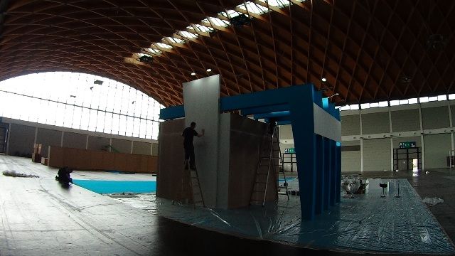 Полным ходом идет работа у участников выставки.  Через день открытие, а ......, ну есть целая ночь перед открытием 😉