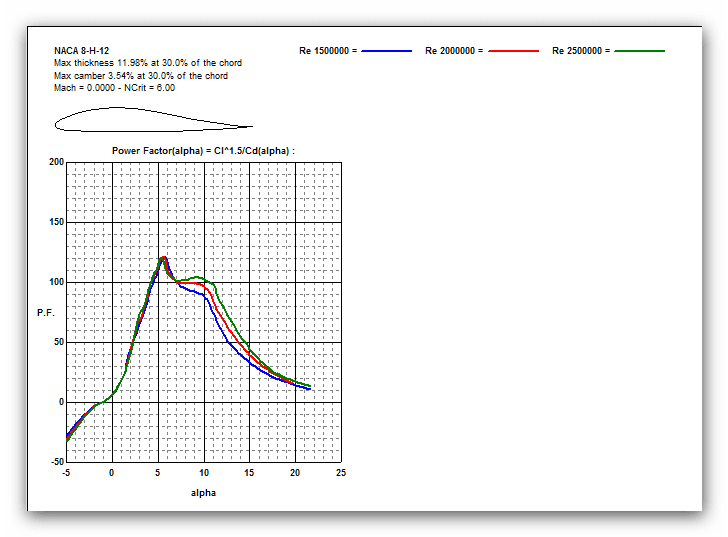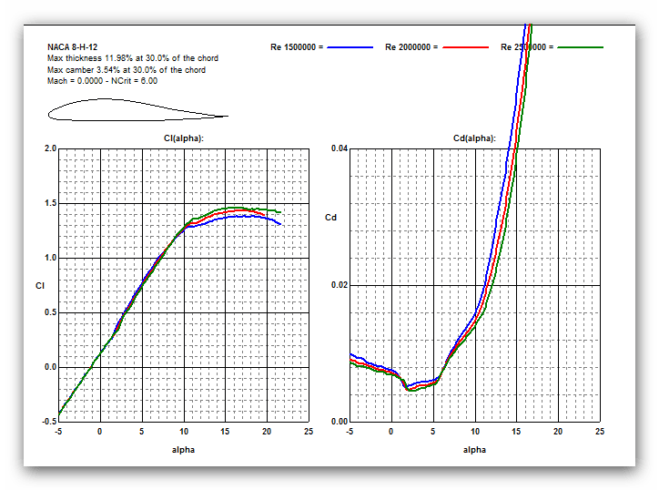 В РДК СЛА публикованны характеристики профиля для больших Re. Вот характеристики того же самого профиля для Re 1.5 до 2.5 млн. - обычных для СЛС: