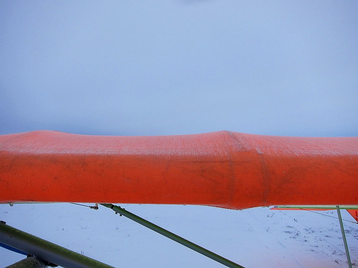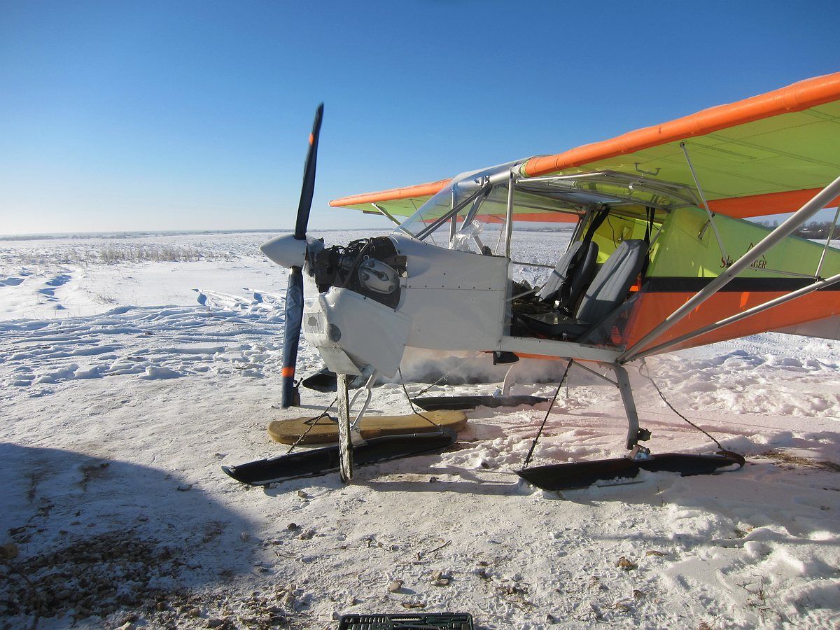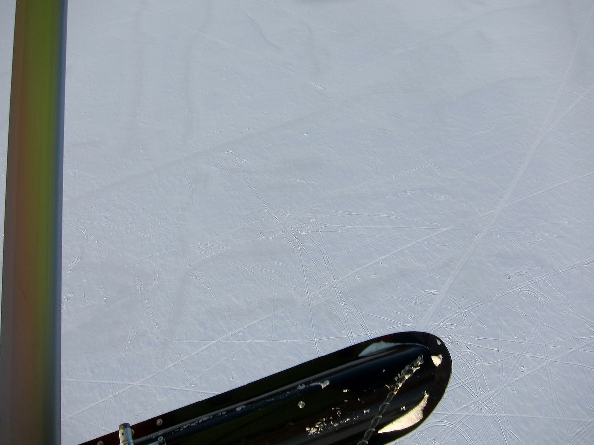 После того как двигатель опробовал, начал готовить самолет к вылету. Проверил лыжи и опять огорчение, на подошве передней лыжи появились несколько сколов. Вот тебе и мало снега!