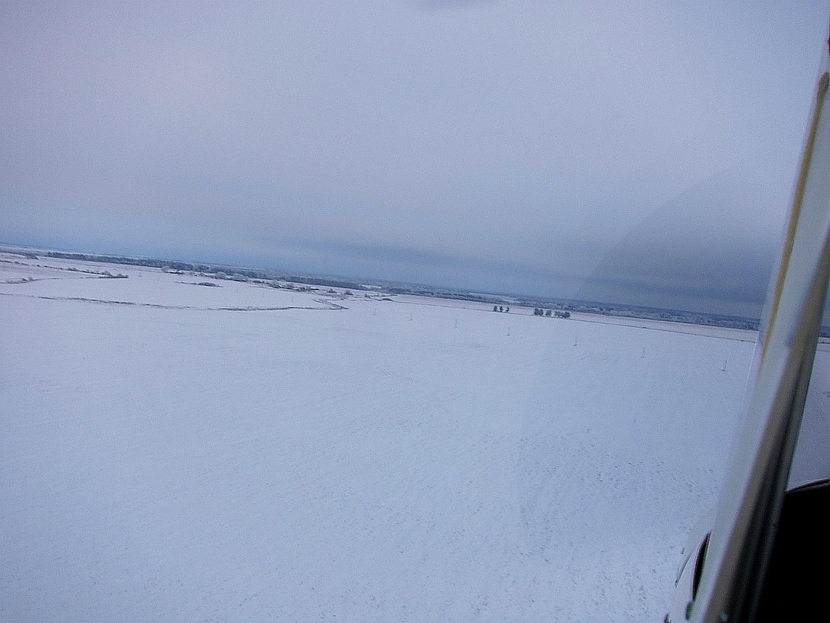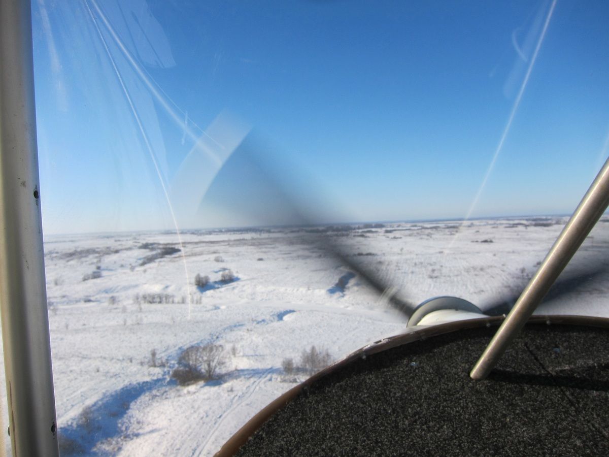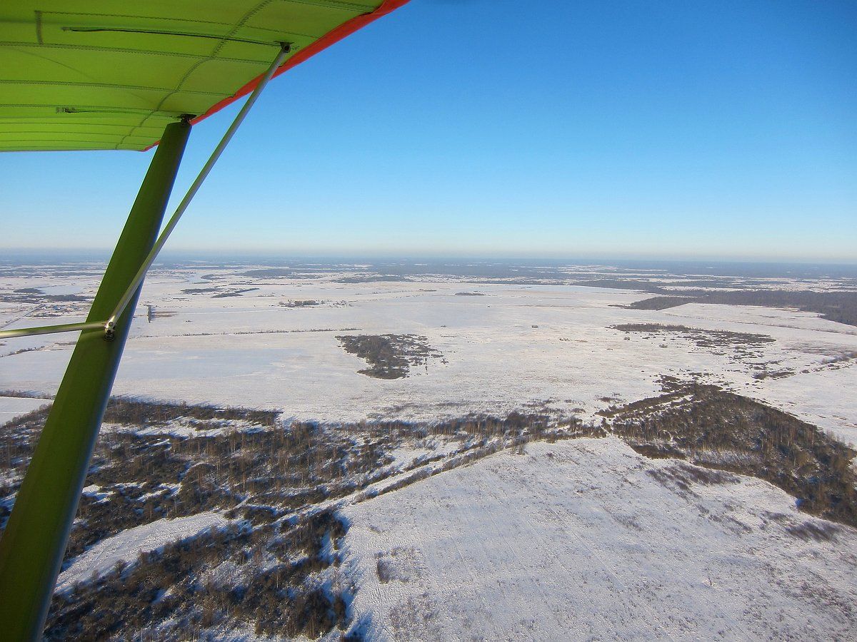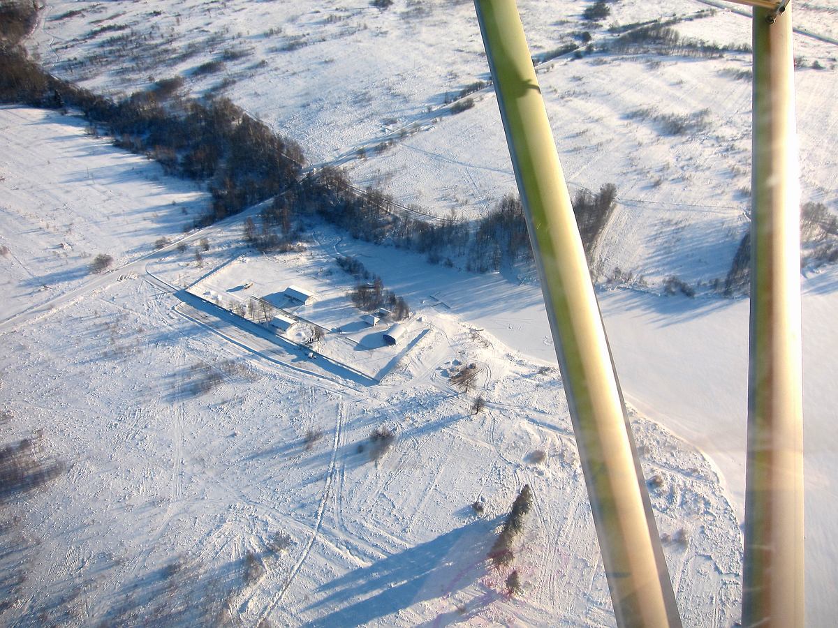 Поле как поле, очень плохо, что снега мало этой зимой. С воздуха отлично видно как присыпанные борозды земли выступают над белой поверхностью. Несмотря на обледенение и приближающие сумерки, делаю два прохода над полем. Выбираю, где снега побольше и рассчитываю дистанцию до столбов ЛЭП.