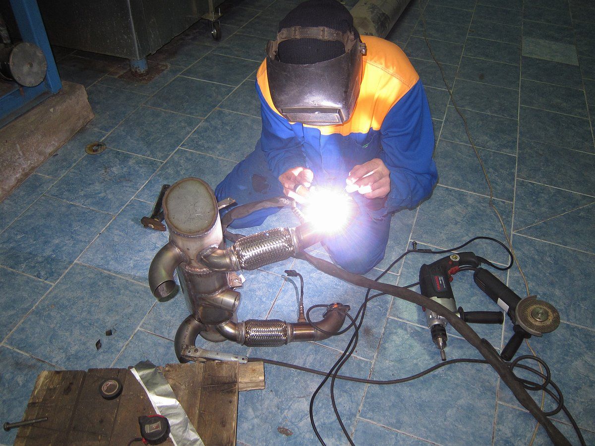 Первый день ушел полностью на заготовку деталей и частичное изготовление в цеху. Сделали оба выхлопных патрубка и аккуратно врезали в них лямбда зонды.