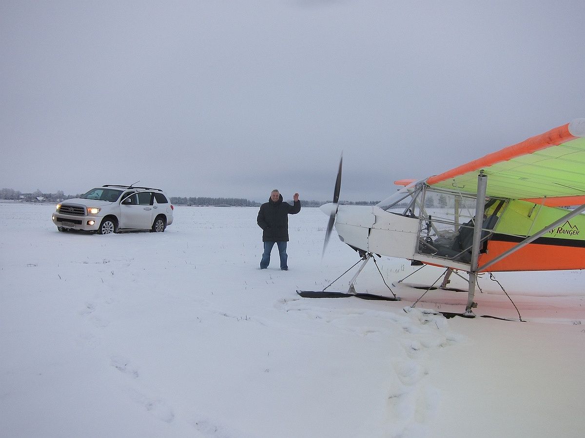 Прошел пешком метров на 100 прямо от стоянки самолета, проверил снег и наличие под ним бугров и рытвин. Выгружаем полностью всю амуницию с борта и грузим в машину.