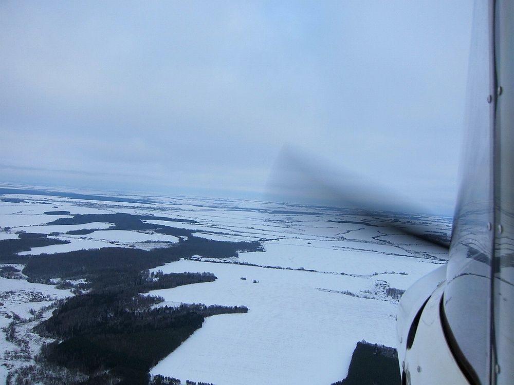 Первая часть маршрута проходит в обход города Александров и далее самолет удаляется в прерию..