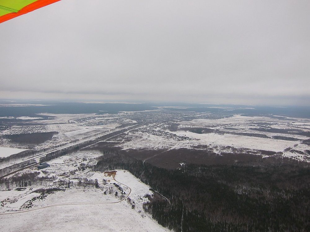 Вот, впереди уже вплотную подходит город, а я еще на приличной высоте.