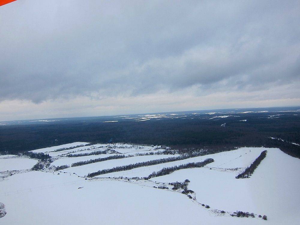 Внизу, несмотря на лыжи и готовность к посадке с подбором, нет возможности сесть без приключений, либо лес, либо заросшее редколесье. Так проходит полчаса, скорость отличная, вскоре траверз Балакирево, Кольчугино и несколько оставленных людьми аэродромов, к сожалению сейчас нет времени на их обследование.
