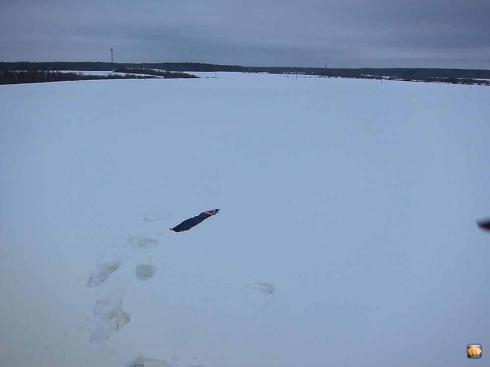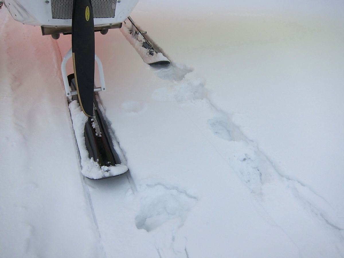 На фото состояние снежной целины. Видно, что человека снег не держит и левая лыжа под весом пилота загружена в снег сильнее.
