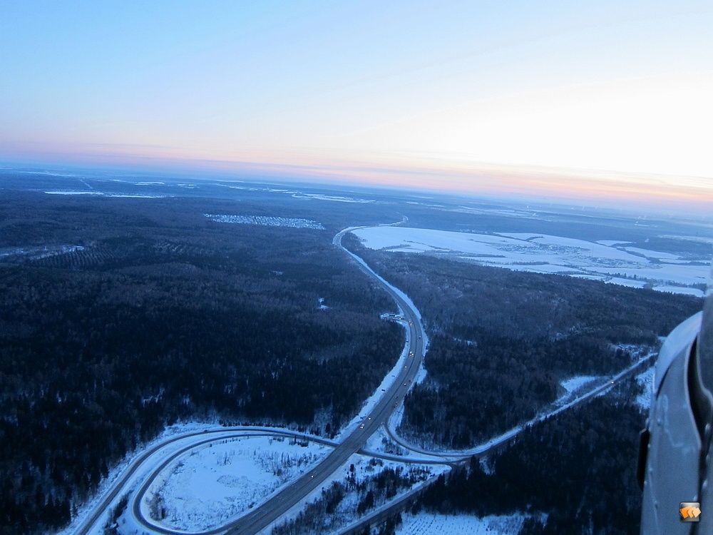Морозный тренировочный полет завершается, иду недалеко от автодороги. Фары машин уже хорошо заметны в свете уходящего дня.
