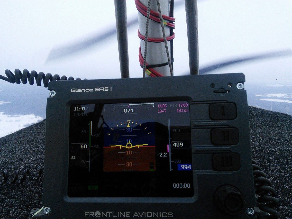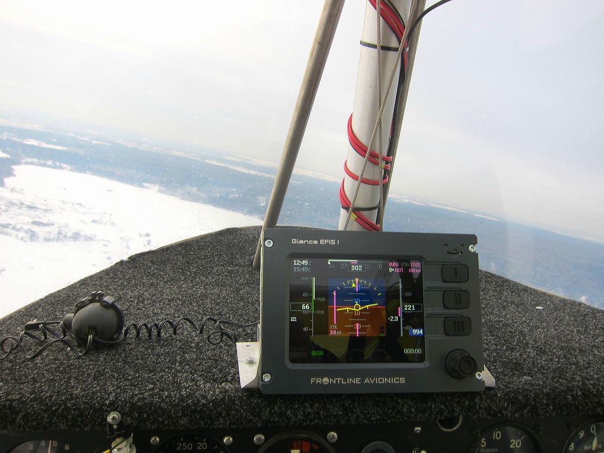 Первоочередная задача, подключение навигационного прибора Glance Efis I и проверка в работе. Вот как выглядит работа прибора в полете