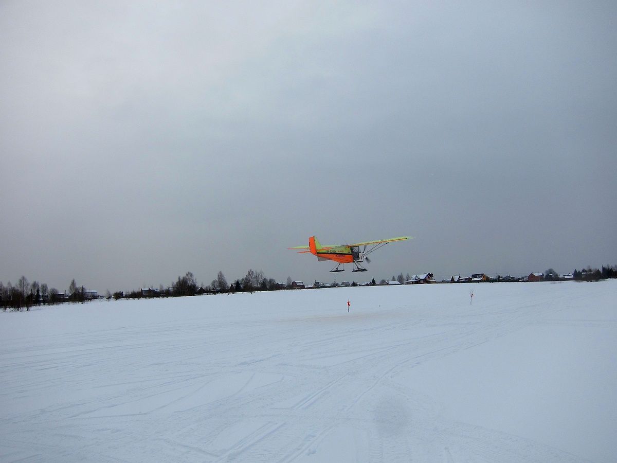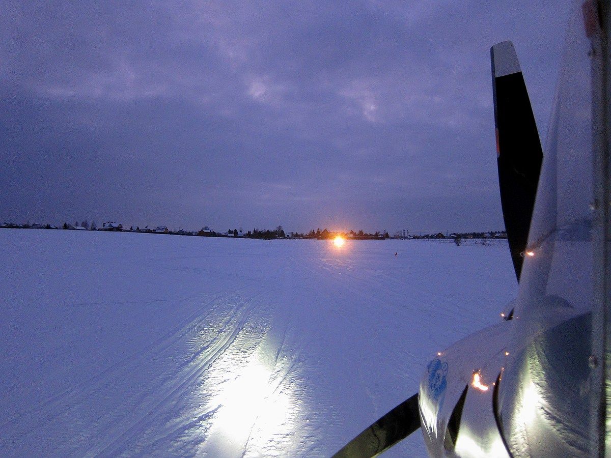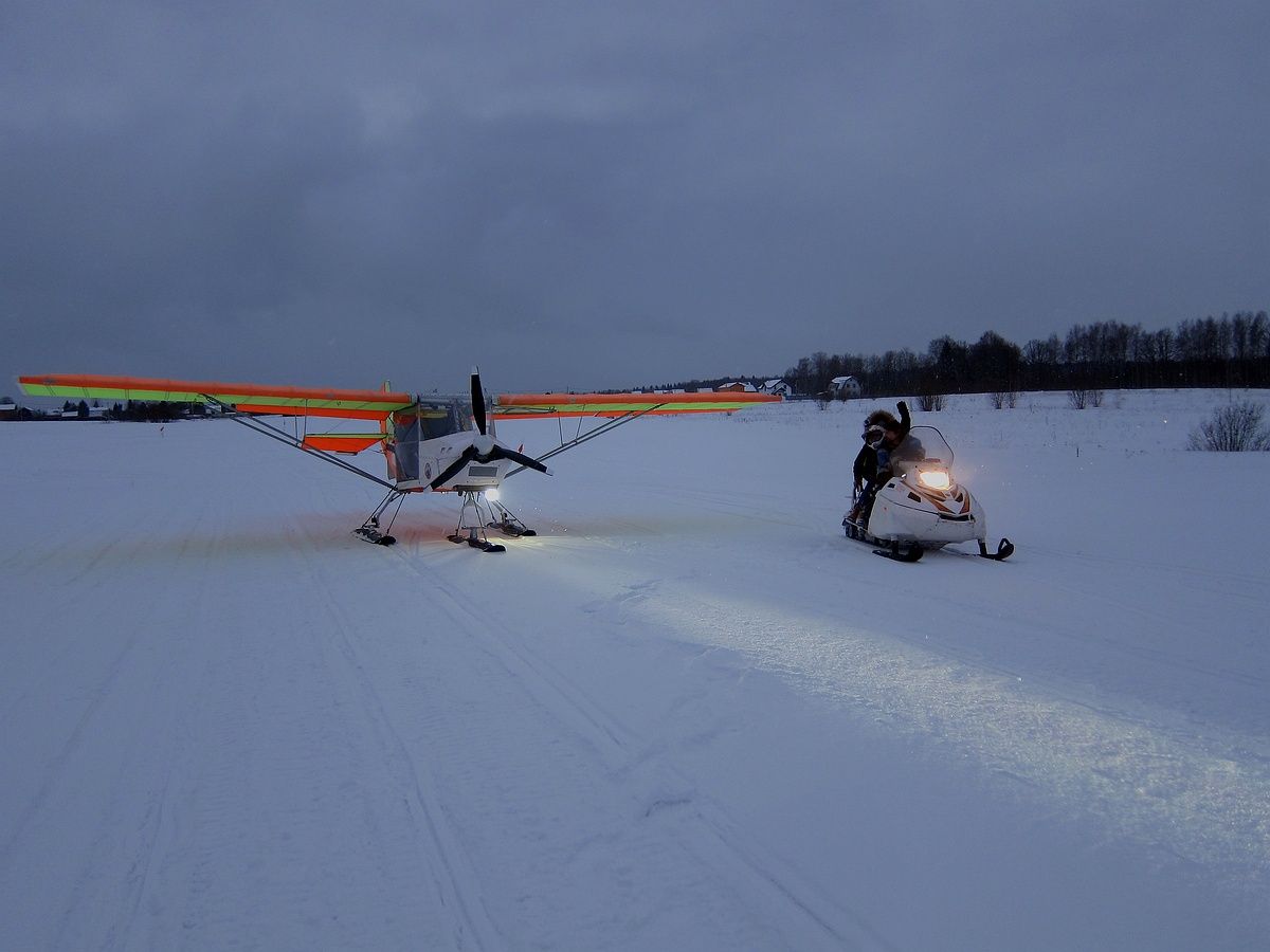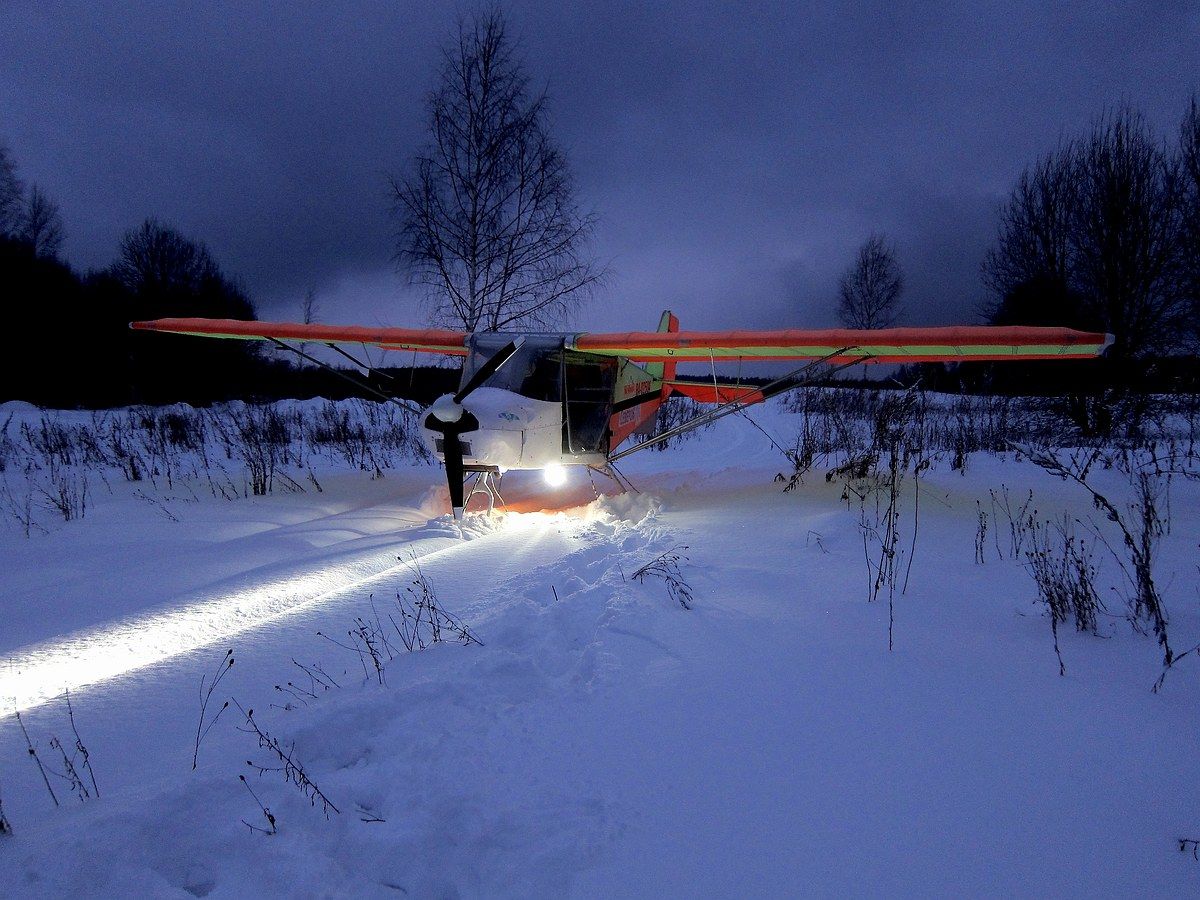 Удалось потренироваться в посадке самолета под фару снегохода, а на следующий день посадка с подбором