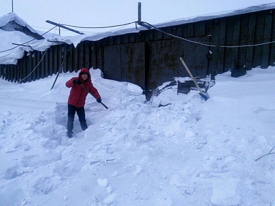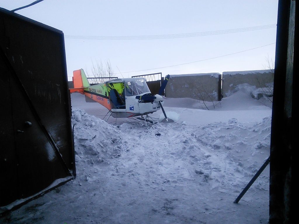 Откопали с Алексеем ангар, где Северок. Пурги заровняли только на пол воротины, благо место продувное. Чтобы выйти для установки крыльев на открытое место, использовал самолет в роли аэросаней.  Оказывается проходимость самолета впечатляет не только меня, но и друзей 🙂