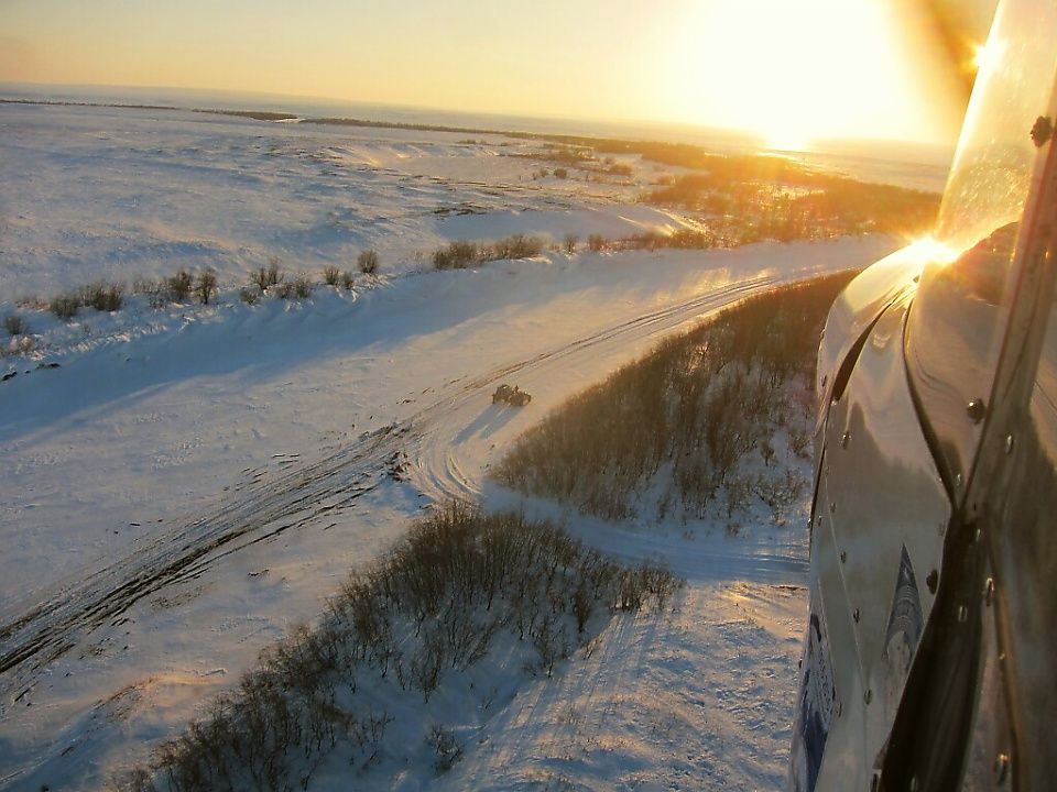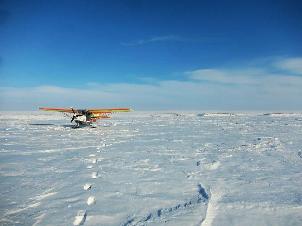 Речь о том, что перед нами стоит весьма сложная задача. В период мартовской слякоти и ветров, Северок идет из-за Полярного круга со всем экспедиционным снаряжением, накопленным за год работы в Арктике, плюс летнее шасси, плюс посылочки и гостинцы, плюс полная заправка и еще немного топлива НЗ.