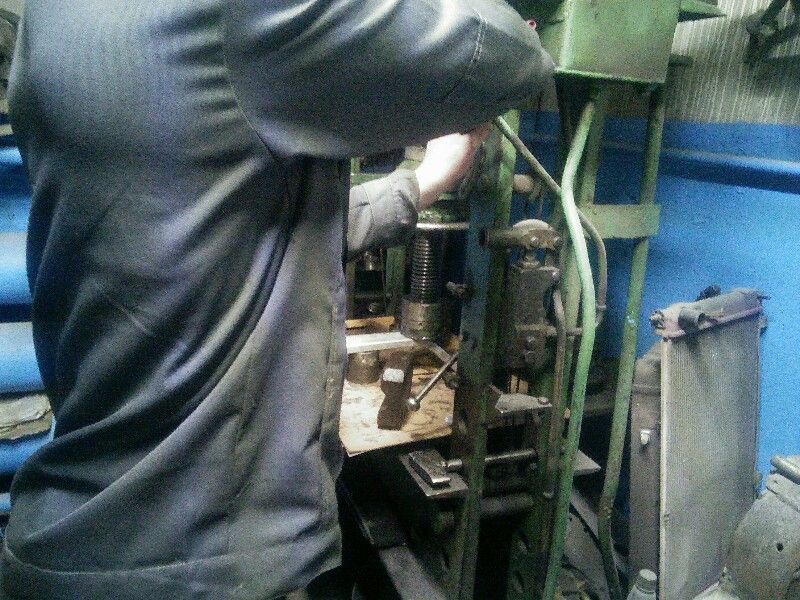Снял рессору с самолета, которая деформировалась на внешний сторону и с запасной тоже б.у повез под пресс. Результат предсказуем, уставшая сталь лопнула, б/у сильно мучать не стал