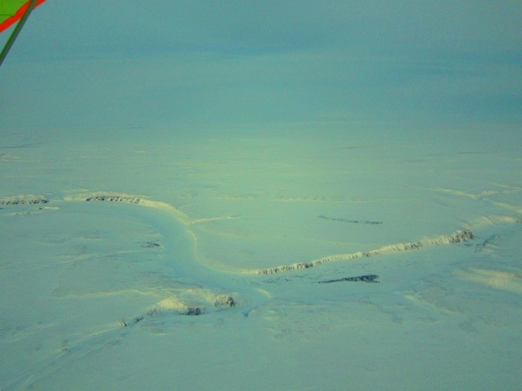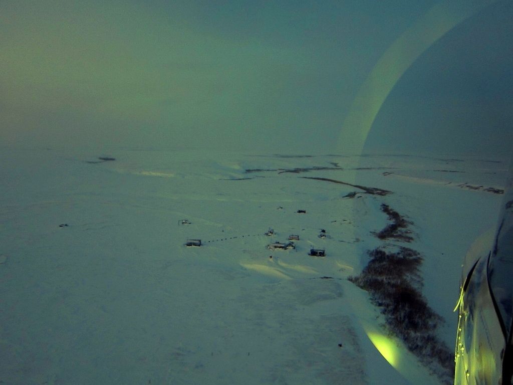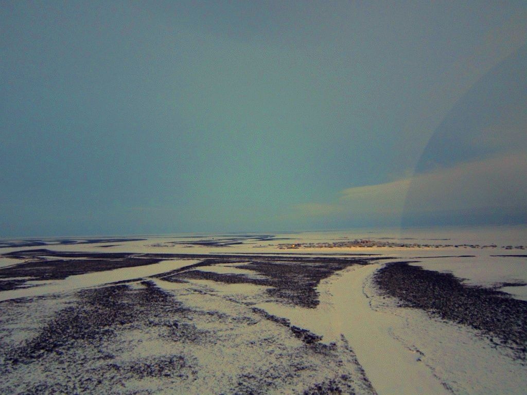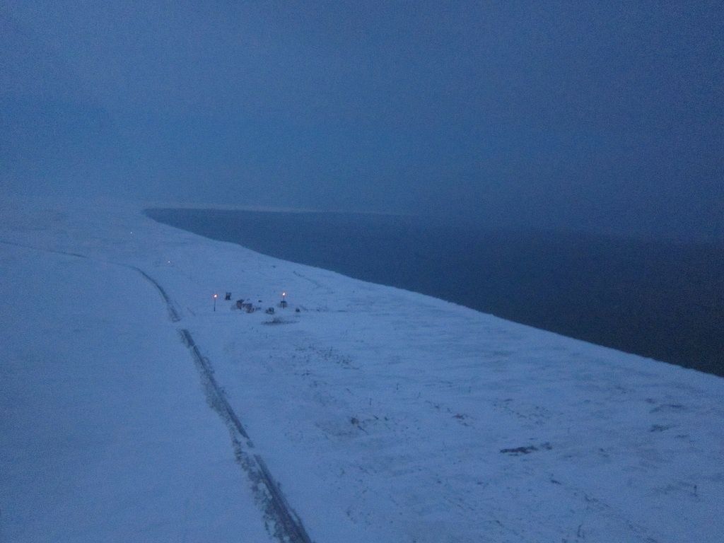 Выход с бирюзовым восходом на мглу у моря и запад, курс в обход хребта на пролив Югорский Шар. Путевая 90 срезаю тундрой и вот уже высоты пошли за сотню, где то справа, одна из старейших брошенных полярных станций, одноименная с проливом.