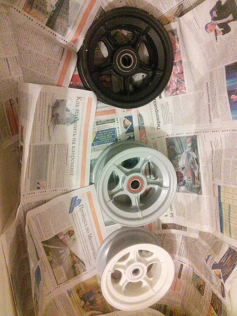 Новое шасси пришлось ковать на коленке. Диски Чернова почистил, обезжирил, покрасил в белый цвет.