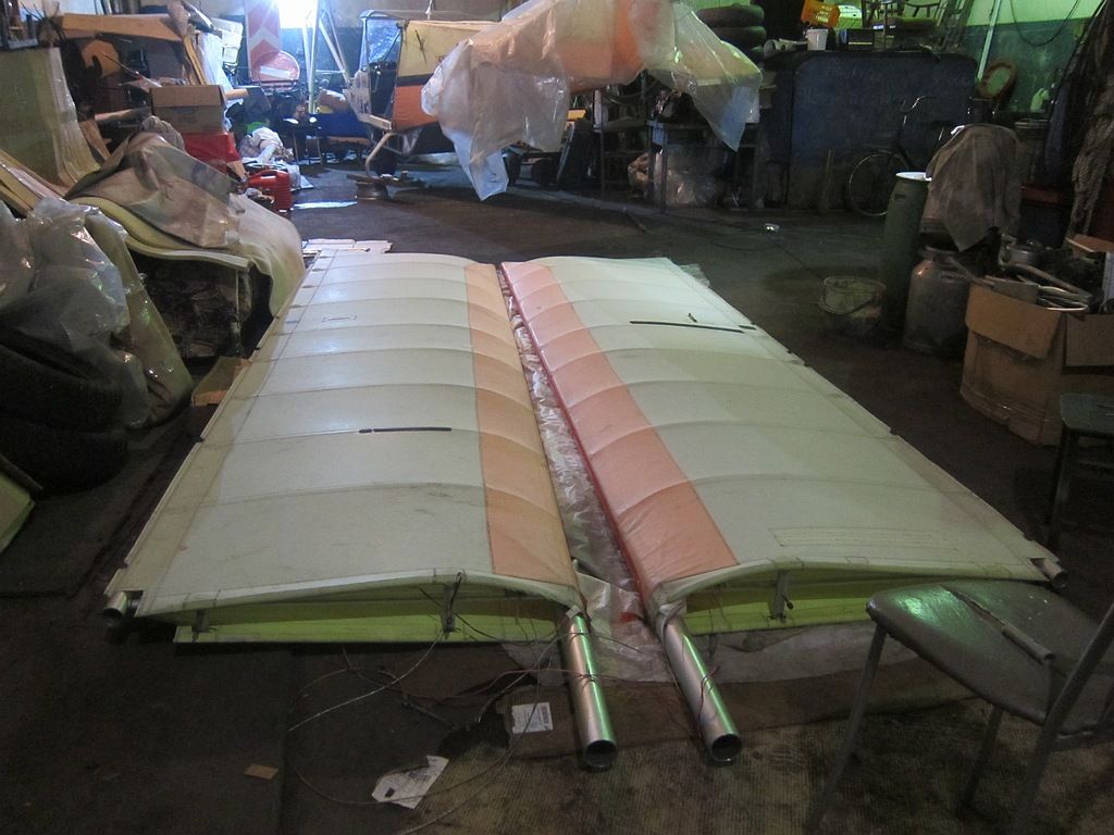 Первоначально были выполнены работы по оценке и ремонту крыльев. Проверены все сочленения конструкции крыла, подштопаны и проклеены надрывы и зацепки, заменил тросовую передачу на элерон.