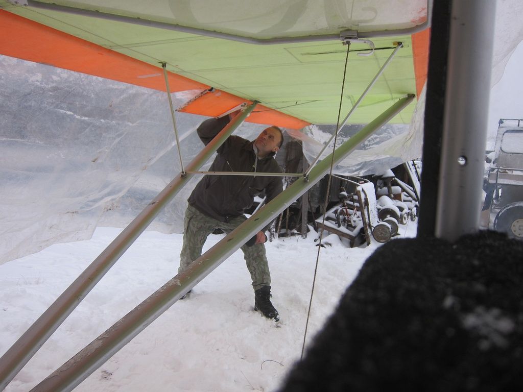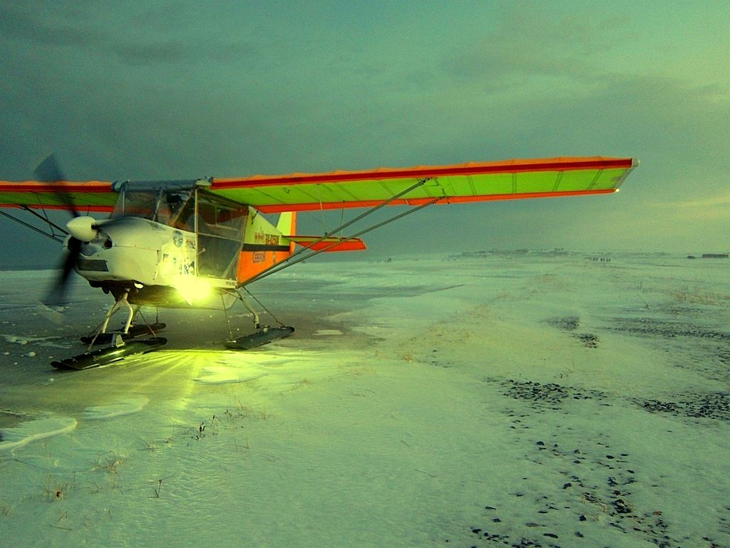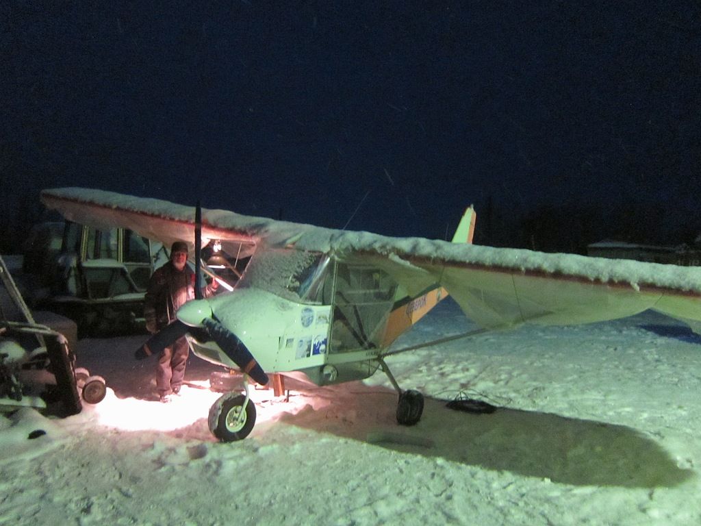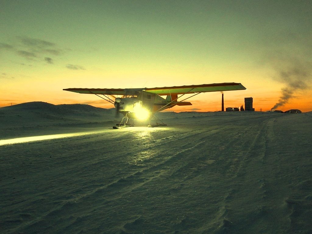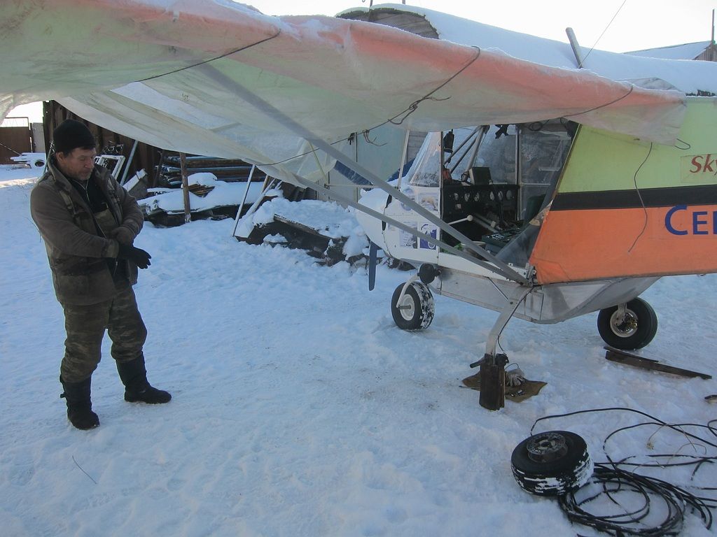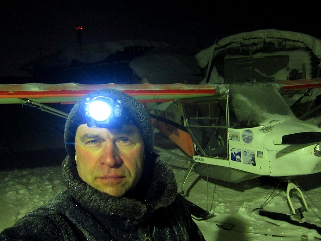 С Русланом Приказчиковым, выволокли заиндевевшими лыжами самолет, развернули.