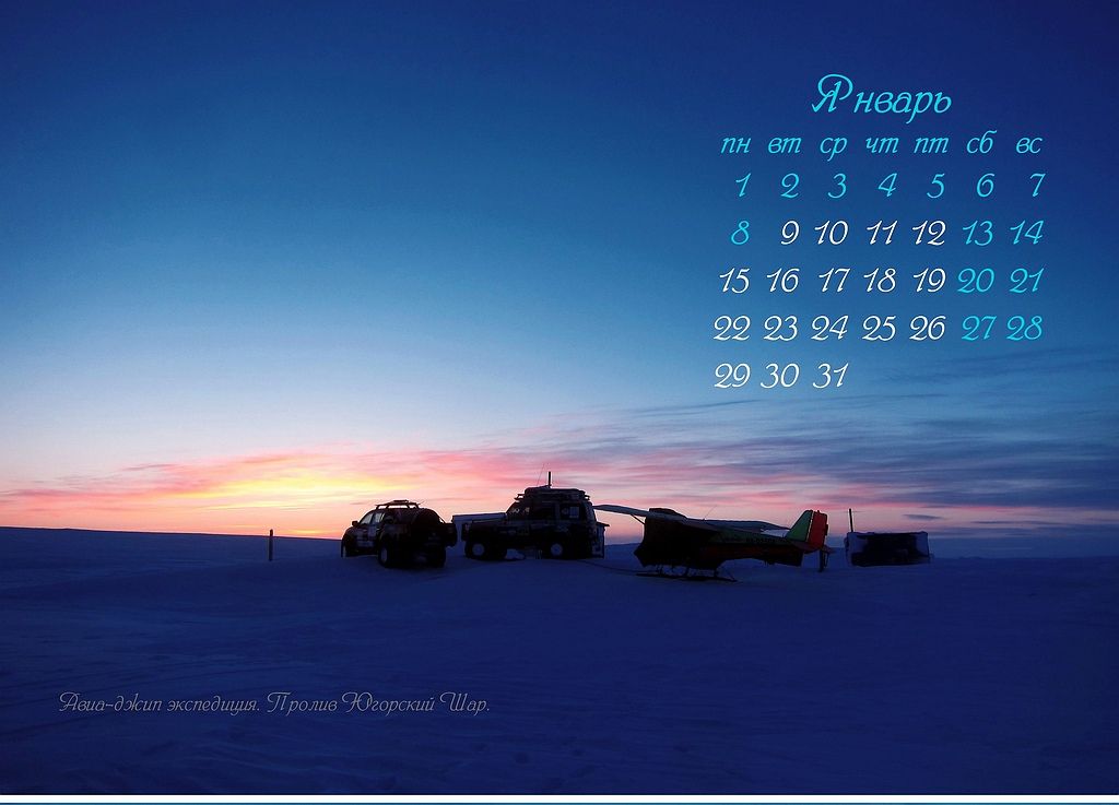 В фотокалендаре отмечены наиболее интересные моменты полетов в Арктике, в регионах Коми, НАО, ЯНАО, Таймыра, населенные пункты: Диксон, Амдерма, Дудинка, Воркута и т.д.