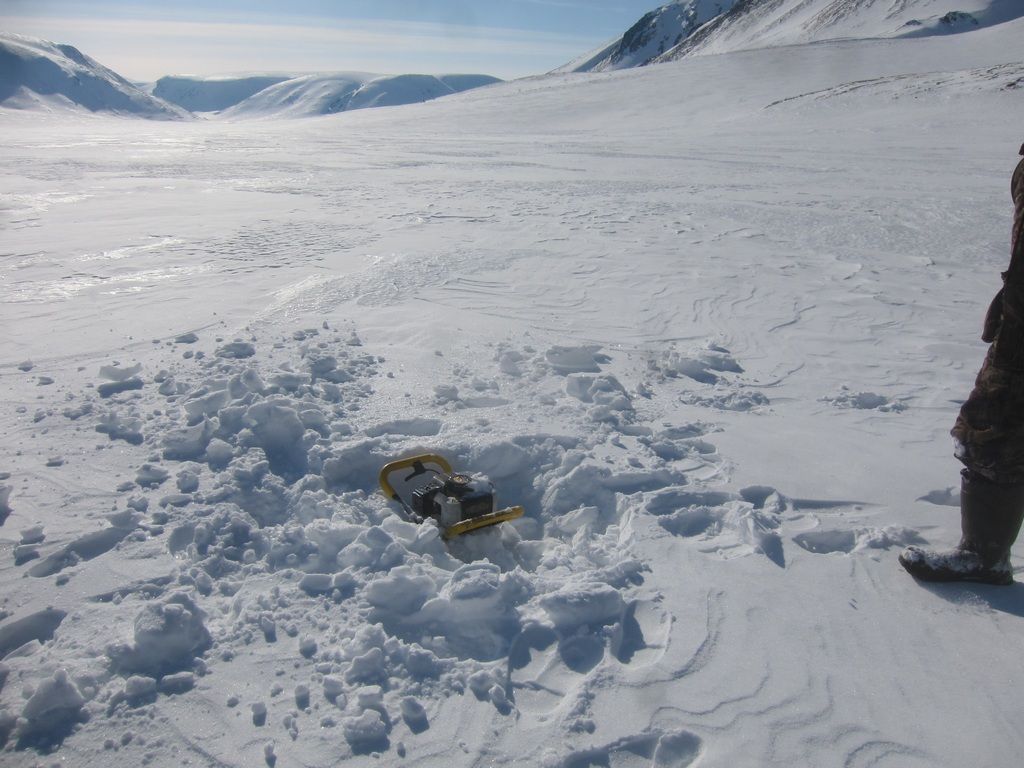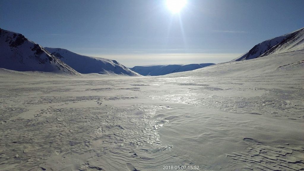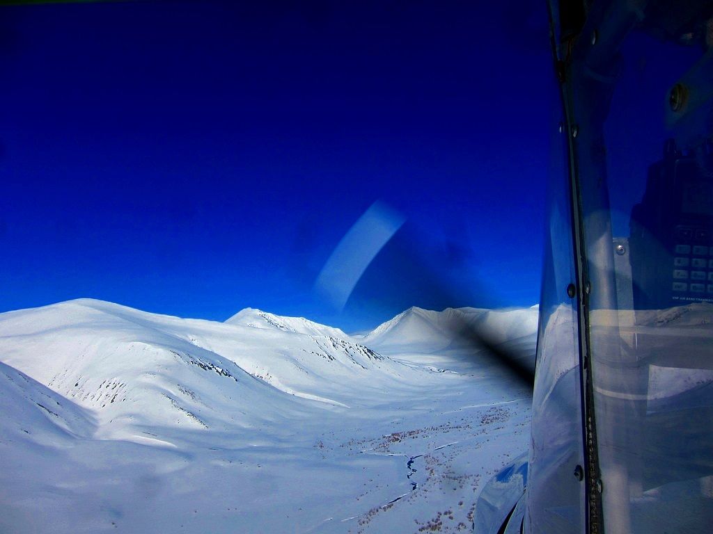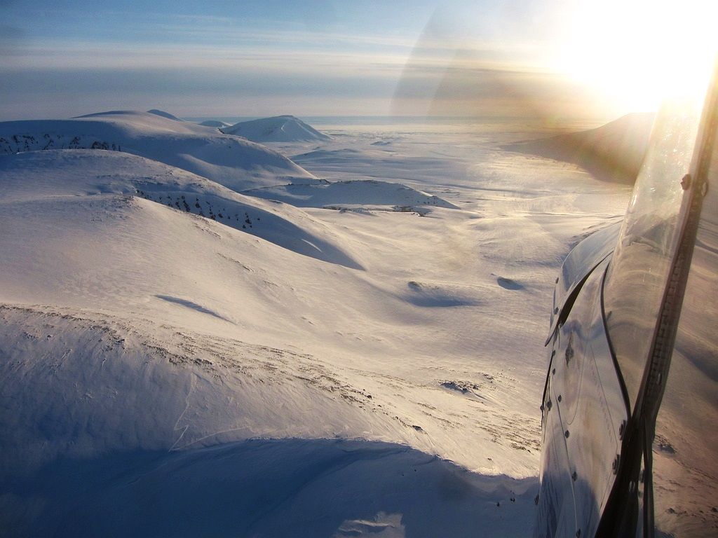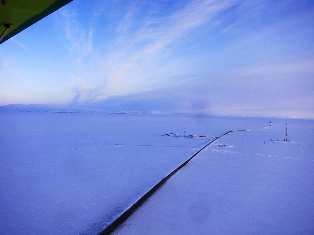 Я на геоточке под загрузку. Снег вялый и даже на уширителях держит самолет плохо, часто цепляю подошвами лыж оттаявшую землю