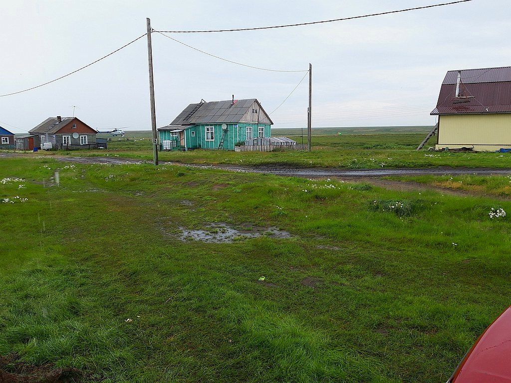 Многие дома стоят поднятые на сваях над землёй, как и в родном Диксоне, только не совсем понял назначение выходящих из земли труб с оконцовками в виде холодильников или теплообменников. Очевидно связано с поддержанием температуры тундровой земли под сваями.