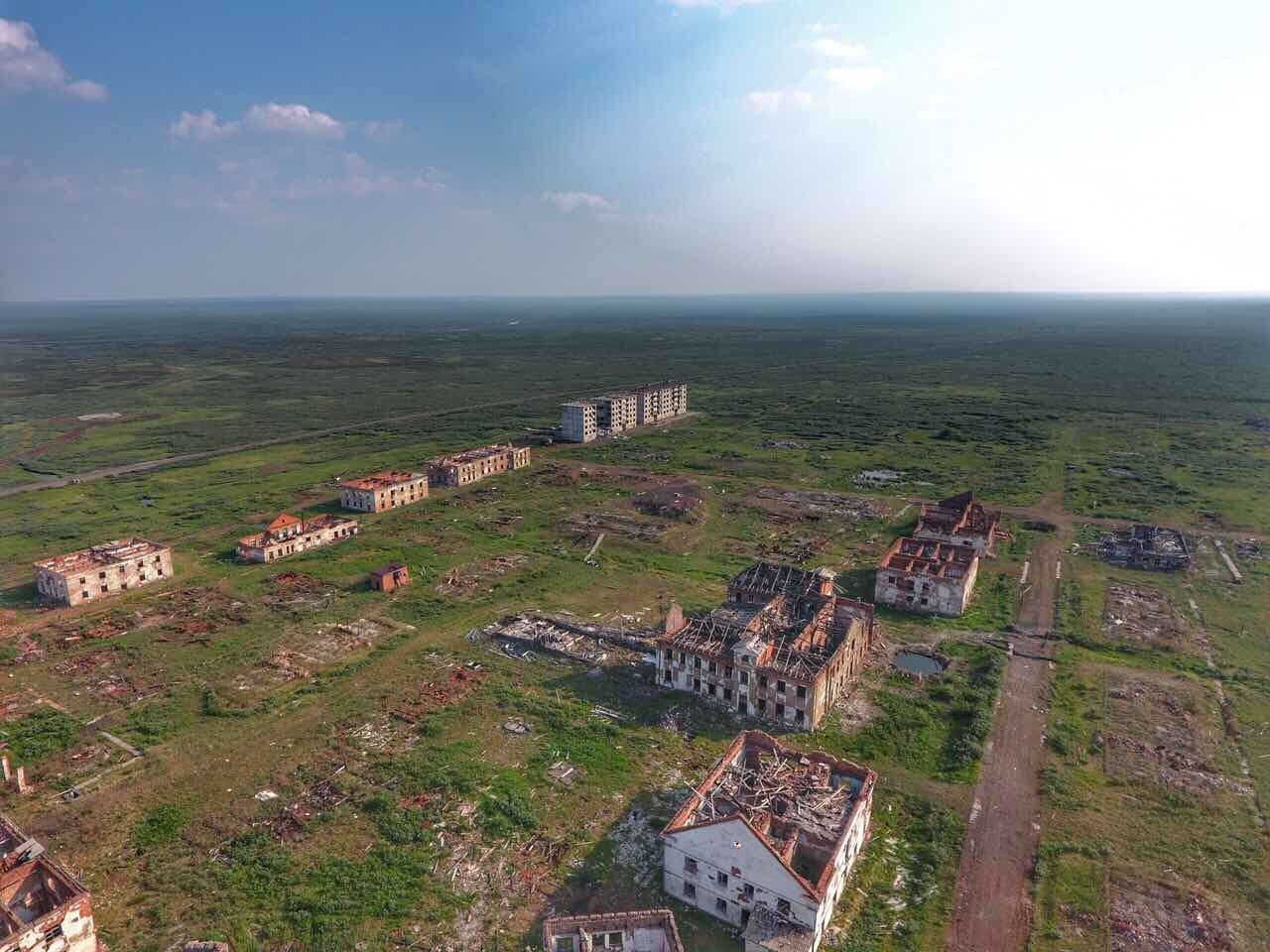 Над Хабарово я сделал несколько кругов, отметив взглядом и фотографиями многочисленные останки становища и более поздних строений, а также лагерь ГУЛАГ с вышками над останками бараков.