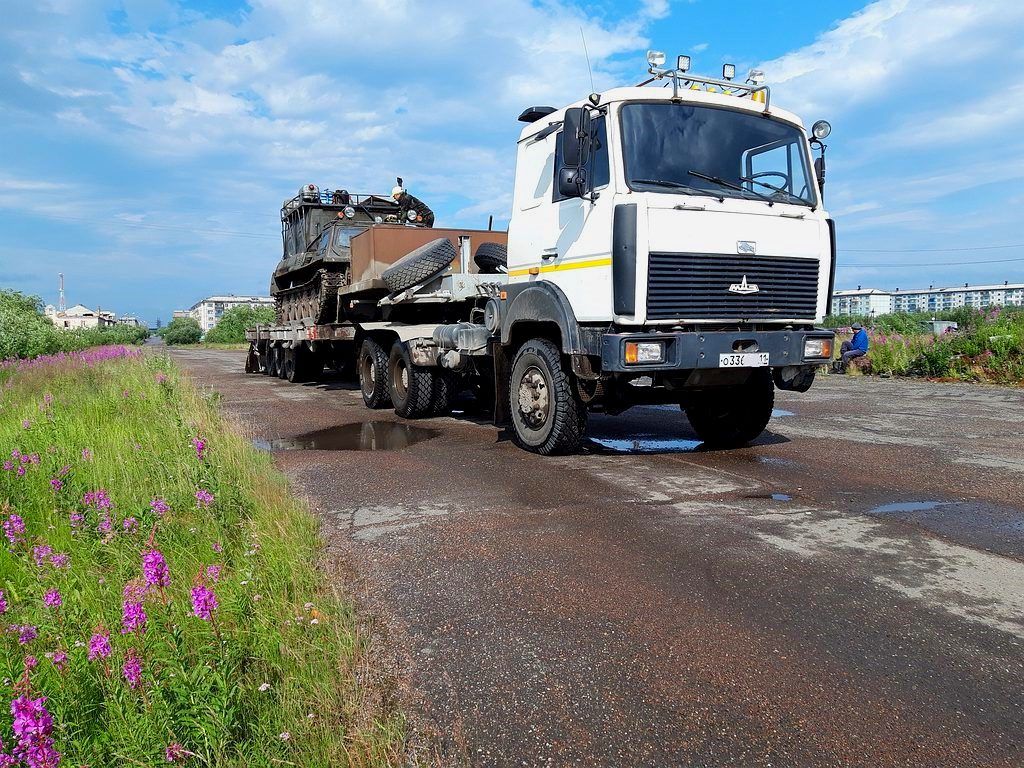 Чтобы не портить гусеницами асфальт, за пределы города наш маленький танк переместился на автовозе.
