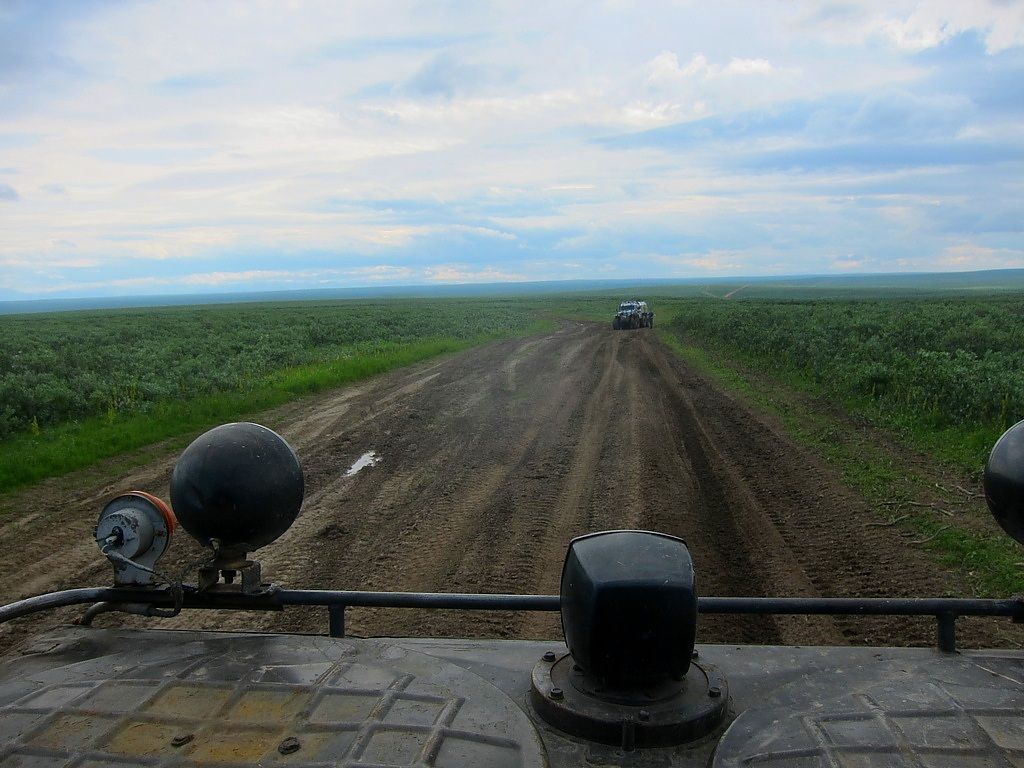 Я еду на броне, между кабиной и кузовом, вначале ко мне запрыгнула и Надя, но проходят часы и терпение северной женщины заканчивается ))