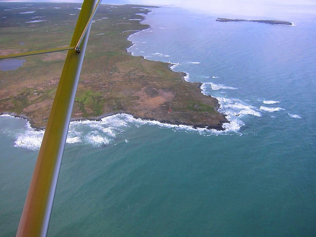 Этот мыс и берег с останками строений сейчас мертв и опасно тих, он приближается к самолету также неотвратимо, как когда-то события подходили сюда десятилетиями, нескончаемым чередом.