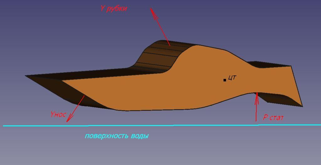 шкипер При проектировании формы надстройки нужно учитывать скорости .. Если они достаточны для создания подъёмной силы от скоростного напора PV[sup]2[/sup]/2*S то задача проектировщика разместить ЦД надстройки как можно дальше к корме ! При этом учитывать что область пониженного давления возникает не в районе сужения струйки , как учит классическая аэродинамика , а  в районе расширения струйки (потока) ..Кабину можно в форме профиля с  снижающейся крышей как у Порше !  Для смещения ЦД в корму ещё хорошо подойдёт полукольцо Кастера , которое создаст на корме область пониженного давления! И конечно же можно разместить управляемое НГО (носовое горизонтальное оперение) , которое добавит уверенности от переворота !