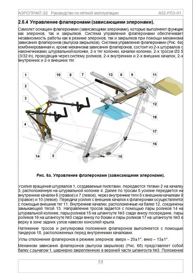 Глава 7.7 в "A32 - Pilot Operating Handbook" - http://www.foxbat.com.au/public/editor_images/A32%20Pilot%20Operating%20Handbook.pdfКак обещал, схема тросового управления флаперонами с описанием из РЛЭ самолета.