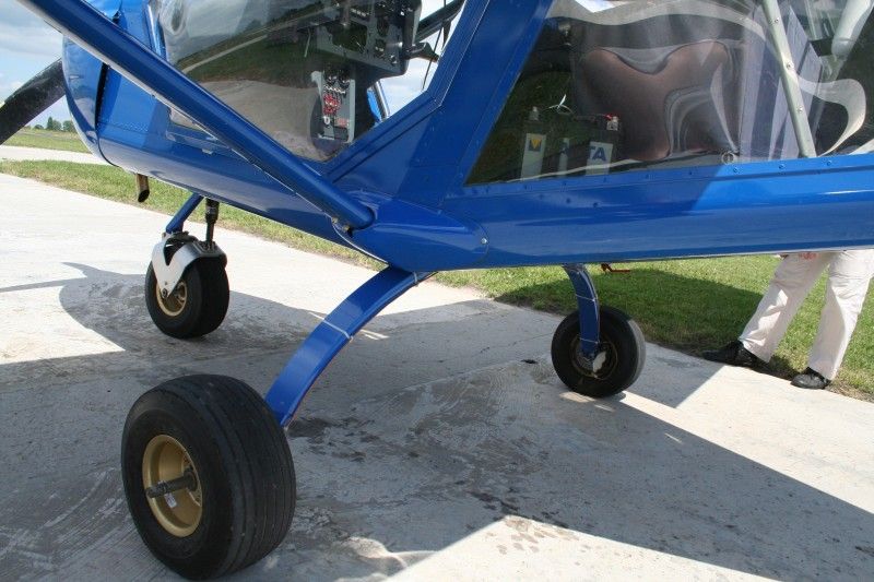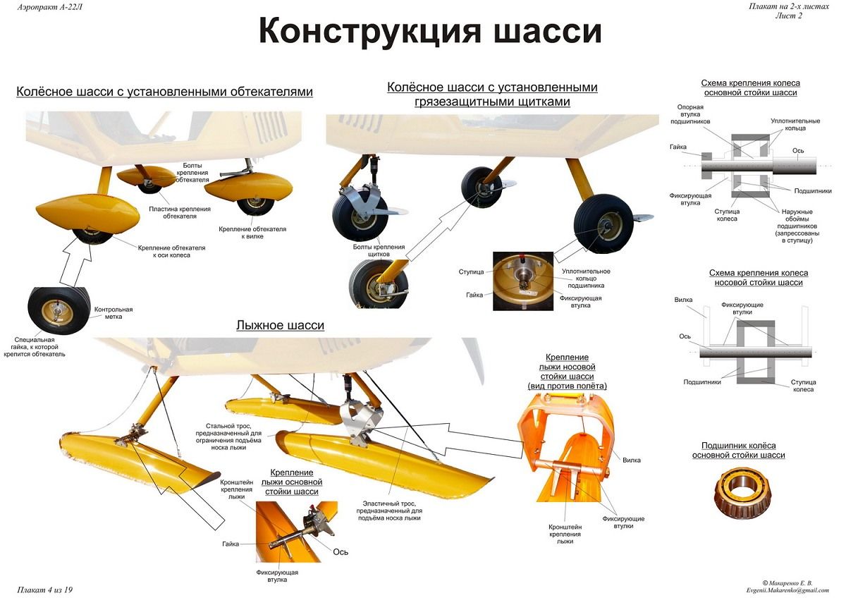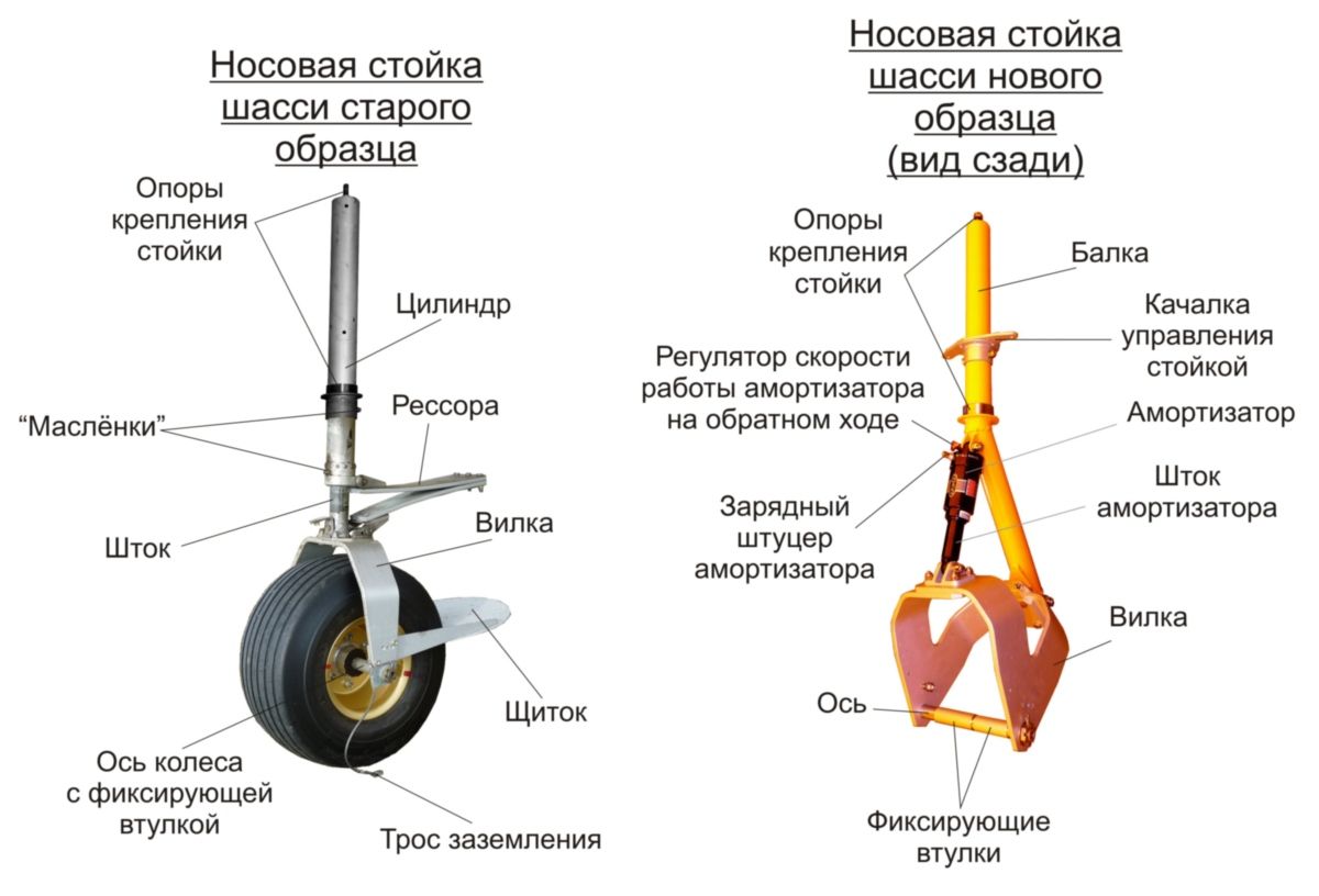 В настоящее время, на каждом самолете А-22L2 (ультралайт) устанавливается передняя стойка телескопической конструкции с параллельно расположенным амортизатором. Самолеты А-22LS идут с рычажной стойкой, что установлена на синем самолете в посте 3133.