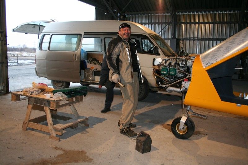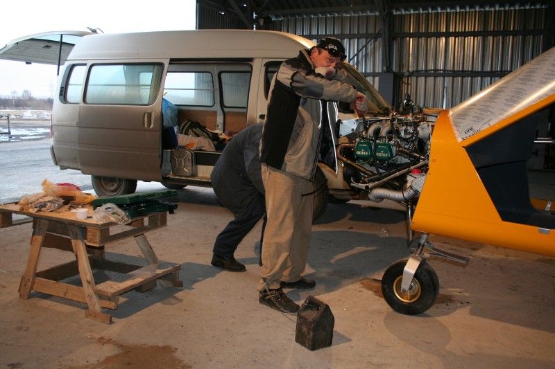 Горячий привет Всем из холодной Сибири! Уважаемые, Непальские товарищи! я трижды писал очень подробный и развернутый ответ на Ваше письмо по-поводу температур-но Ваш почтовый ящик все время ругается и отрыгивает мои письма 😡. Давайте общаться на этом форуме-заодно и другие чего-нибудь узнают о самолете полезного-нового. Теперь о температурах. Постоянно низкая темп. масла-это не гут. Вообще один раз за летную смену желательно прогревать масло до 105-108 град., чтобы из масла испарился водяной конденсат, и оно сохраняло свои свойства. Что касается продолжительного снижения-нельзя надолго полностью дросселировать 912-й этого не любит (можно запросто схлопотать перегрев+прогар поршня на фоне теплового перекоса двиг-ля) т.к при таком долгом снижении на "малом газе" смесь "обедняется", сильно ухудшается охлаждение)."Жабры" закрывать, считаю не стоит,(я сам пробовал это делать раньше)т.к ухудшится и без того малый по-сравнению с передними цилиндрами обдув задней пары цилиндров. Мы, раньше также подклеивали оба радиатора металлизированным скотчем, в зависимости от температуры окр. возд. Как правило-масляный практически полностью (кстати какого он у вашего самолета размера?-они бывают большие, средние и маленькие), водяной на одну треть (конечно, кроме центральной его части). Абсолютная панацея от всех этих проблем-термостат на масляной системе. Мы поставили термостат немецкого пр-ва, и навсегда забыли о скотче, заклеивании, угадывании погоды, и.т.д. Термостат-классный. Четко держит 87-97 град., независимо от режима снижение-набор. Быстрее прогревается двигатель на земле. Испытав, термостат на одном из самолетов, мы укомплектовали им все проданные самолеты. Кроме того, на всех наших самолетах мы установили указатели разряжения во впускном коллекторе-и при снижении выдерживаем минимальный режим 15%, который исключает риск перегрева, и прогар поршня. Глиссада, конечно стала более пологой, но это лучше, чем рисковать дорогим двигателем. С удовольствием продолжу общение, и отвечу на Ваши вопроы. С Уважением, Влад. При перегоне двух самолетов на Запад у нас установился Сибирский антициклон, температура ночью-утром была -38, днем -34. Лететь нужно было , как всегда, срочно. Движки перед запуском мы всегда греем "Кероной" до +25+30. Наличие киевского рессивера обеспечивает подогрев воздуха на входе в карбюраторы (правда, не слишком эффективно, как хотелось-бы), но мы сделали небольшую доработку(теплосъемную рубашку на банке глушителя, от которой уже идет гофра в рессивер). Тот "арктический" полет прошел отлично. В кабинах было тепло. Во-время промежуточной посадки для дозаправки-вышли из самолетов и задубели через 5 минут. Быстро заправились, попили чаю в машине и рванули в уютные кабины своих самолетов. Лететь было теплее и комфортнее, чем находиться нва земле....а ты к кому со своими вопросами обращался из Сибиряков?
