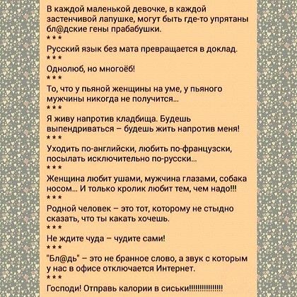 - Вставьте пропущенные буквы в слово *у*ня. Если у вас получилось "кухня" - вы культурный человек... 🙂