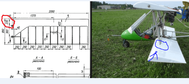 То что вы выделили синим "кружочком" есть стойка между левыми плоскостями(верхн. и нижн.),конкретно узел крепления к нижней левой плоскости,находится на лонжероне,это примерно(из вашего же рисунка) 235 мм. 😉