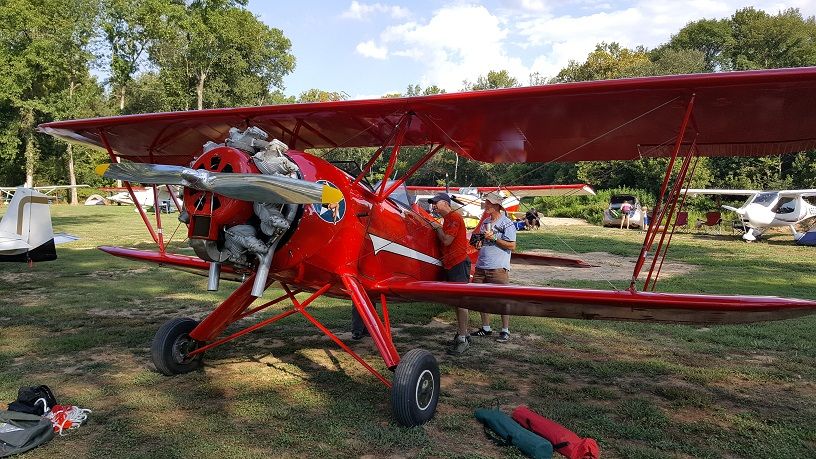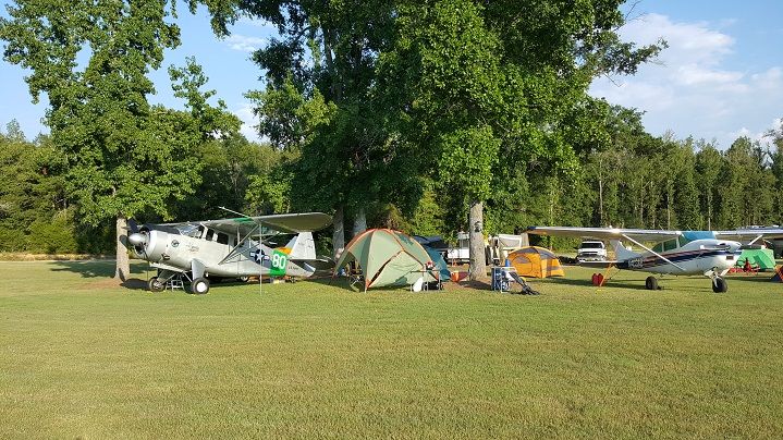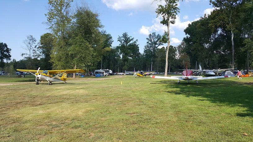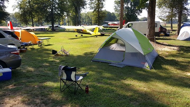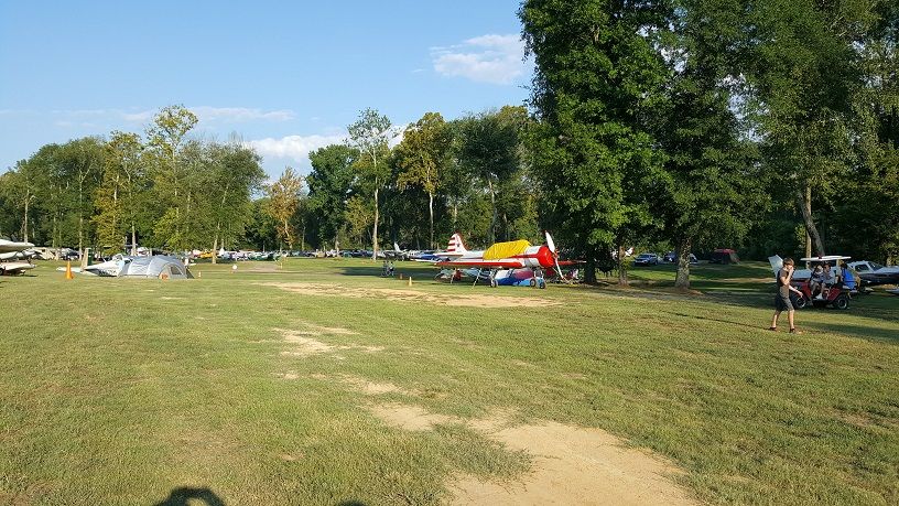 Мы пошли посмотреть на прибывающих. В начале очередного ряда заруливала старая Сессна 170 с хвостовым колесом, вот она заглушила двигатель и из нее выпрыгнули две поджарые дамы лет тридцати. Мы подошли поздороваться. Одна из них выглядела весьма нетривиально - черные кожаные сапоги с металлическими заклепками, такие же кожаные браслеты и черный кожаный жилет, что наводило на определенные мысли. На мое: "Привет девчонки! Как долетели?" дама в коже буркнула "Хай", вытащила из кармана телефон и пошла за самолет звонить куда-то, наверное летный план закрывать. Вторая оказалась очень общительной и рассказала, что они прилетели  из штата Джорджия из Атланты, летели три часа и здесь первый раз. Я выразил свое удивление, что они добрались так быстро и дама сказала, что этот самолет гораздо быстрее, чем ее второй самолет - Стирман. Во как, у нее еще и Стирман есть (это военный биплан примерно 30-х годов). На наше предложение помочь поставить палатку разговорчивая сказала, что они справятся сами и мы потопали дальше.