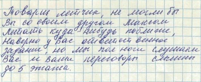 Вернулся бортинженер с белым лицом : «Командир, человек за бортом!!!». «Как за бортом?!» «Да этот, которого не брали из-за пьянки, видно пролез в суматохе в хвостовой отсек, думая выйти в кабину после взлёта!». Высота 6000 в наборе. Что делать? Если разгерметизировать сейчас – в салоне полсотни людей, половина не лётный состав, напуганных беготнёй с огнетушителями, да и безболезненно это не пройдёт для многих из них. Если аварийно снижаться – надо объяснится с диспетчером. Командир полка Еремеев : « Довольно приключений – возвращаемся!». Личный состав взвыл : «Командир, выдержим! Только домой, в Шяуляй!». Еремеев ко мне « Что делаем?». Я ему : « Виталий Семёнович, вернёмся – объяснятся, все равно, с командованием придётся. Причину докладывать». Еремеев : « Дима - разгерметизация! Объяви по громкой для всех, чтобы приготовились!» и мне: « Давай вниз, проследи, что бы этого придурка народ не убил за выходку!». Завыла сирена. В ушах заломило. Я бросился вниз по лестнице к хвостовому отсеку. У двери в него уже собрался народ, пытаясь открыть её. В окошке было видно зелёное лицо виновника с трясущимися губами ( за бортом было -30). Когда давление выровнялось, его волоком затащили в салон, напялили кислородную маску. Пришлось вмешаться, так как некоторые хотели заняться воспитанием. Дверь закрыли. Загерметизировались и благополучно долетели до Шауляя.