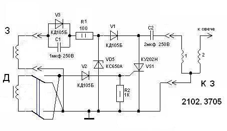 В случае если параметры катушки окажутся сильно иными ( например первичная обмотка 4.5 - 5 Ом - под транзисторную систему ) - я рекомендовал бы использовать катушку