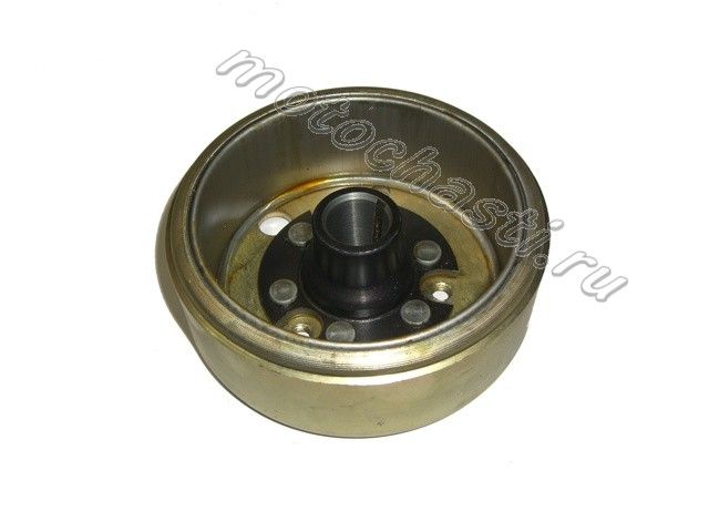 Если колокол  ротора  стальной -  чаще  всего  он  бывает  с  4  магнитами  -  под  статор  с  двумя  катушками  или  с  6--7- 8 - 12  магнитами  - пот  статор  в  форме  ромашки. Исключения - тоже  бывают. К  примеру - бывают  роторы  с  4  магнитами  взаимодействующими  с  12  полюсными  башмаками  статора. Нетрудно  заметить  что  в  таком  случае -  число  полюсных  башмаков  статора - кратно  числу  магнитов  и  их  размеры  должны  быть  комплиментарны.