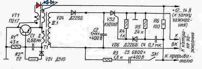 Автор рекомендует 50ма :-? , ну про ток прерывателя забыли.................(обычно замкнут) ! 😉 Вообще схему Сверчкова обожаю,считаю её более стабильной в работе!!! :🙂