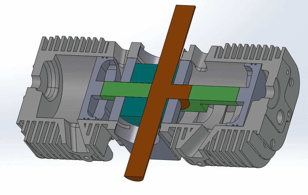 1) гармоническое движение поршней, отсутствие вибраций высших порядков и увеличенное время выстоя поршней для газообмена в двухтактниках;