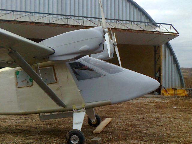 На улице самолет уже не такой большой. Очень удобный прозрачный люк в носу позволяет не только строить заход но и обслуживать управление