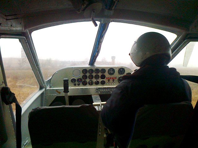 Для выброски нужен авиагоризонт. Пока вместо него поставили ЭУП. Для облета пойдет. Второе управление есть. просто ручка снимается. Парашютисты сидят задом наперед на полу. Слева садится парашютист вместо кресла.