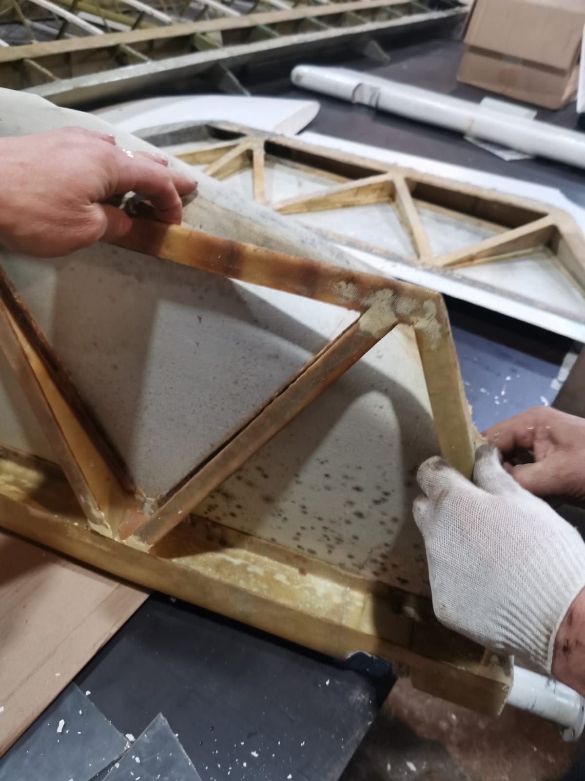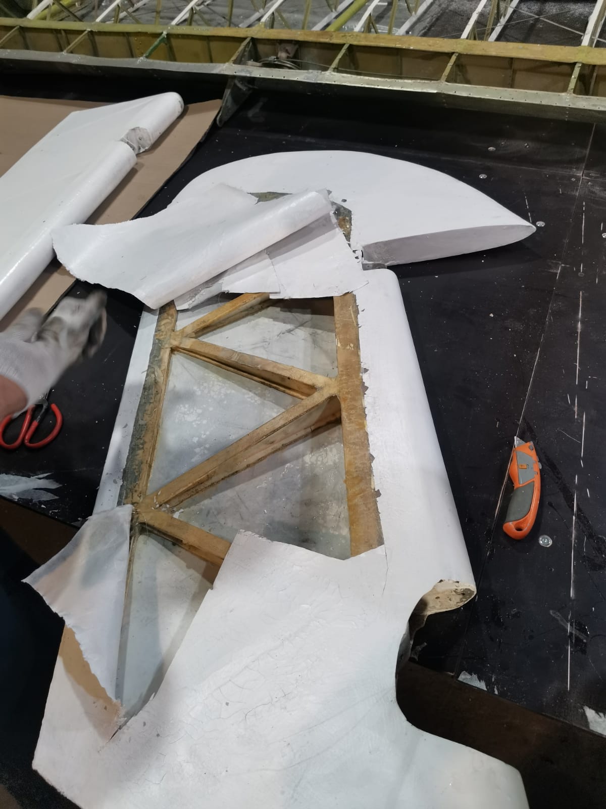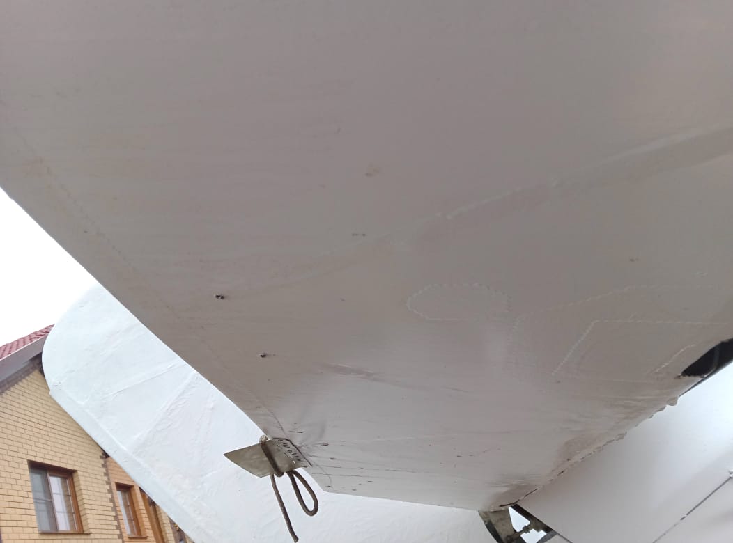 Срок эксплуатации вашего самолета, прямо скажем, большой. Поэтому безжалостное снятие тряпочной обшивки. Очень внимательный осмотр на наличие трещин, коррозионных поражений, расслоение стеклопластика. Стеклопластик очень не любит пресную воду - осмос вгрызается в композит с давлением 300...400 атмосфер.