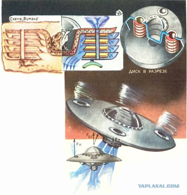 Сейчас многое можно посмотреть, прочитать в интернете, ютубе. Попалась мне на глаза заметка про летающие диски немцев, которые они создавали в конце войны. И начал я фантазировать да рисовать,и думать, сознавая внутри себя , что ничего нового я не придумаю. все уже много раз придумано. Но все таки мысли ворочаются в голове. Не скажу , что я силен в аэродинамике , в воздушных потоках и завихрениях. Хотя в молодости вроде все изучал, не глубоко конечно.Прошу умных людей немного объяснить и раскрыть мне мои заблуждения, пока я не начал тратить материальные и денежные ресурсы для постройки маленького образца. То. что есть в доступе, я прочитал и представление имею. Итак: Есть две оболочки, верхняя 1 -цельная, внутреняя 2- с отверстием в верхней центральной части для прохода засасываемого воздуха центробежным вентилятором 4. Оболочки круглые, соединенные между собой ребрами жескости.Двигатель 5, вращающий вентилятор, находится внутри основного, несущего корпуса. Корпус соединен с оболочками также ребрами жесткости .Стрелками обозначены потоки воздуха, при вращении центробежного вентилятора. Плюс или минус в кружочке- области повышенного или пониженного давления. На внутренней поверхности наружной оболочки имеется шероховатость, замедлитель скорости проходящего воздуха к вентилятору.По моему мнению, должен возникнуть момент подьемной силы, превышающий вес аппарата.Не претендую ни на что, просто стало интересно. как же немцы летали, используя те технологии. которые на тот момент были. (Читал, что они использовали реактивные двигатели, где скорость истечения газов несравнимо больше . чем у вентилятора) И все же....