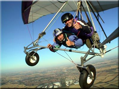 Есть парапланерная подвеска, цепляйте и летите как хотите. В сидячем положении выше центр тяжести, следовательно хуже управляемость, место приложения усилий рук приходится в подкосы следовательно, короче рычаг, и туже управление.