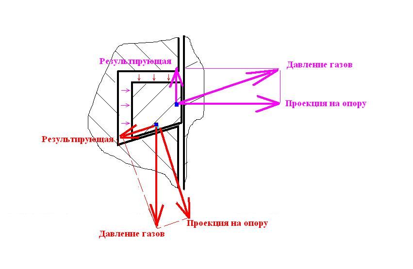 Зачем так бездарно оправдываться? - нарисовали безграмотную галиматью применительно к газовым силам "слева" ( с тыла по вашему) - еще раз эта сила строго горизонтальная, а не по диагонали как у Вас на первом рисунке. 🙂