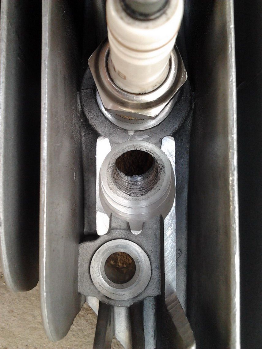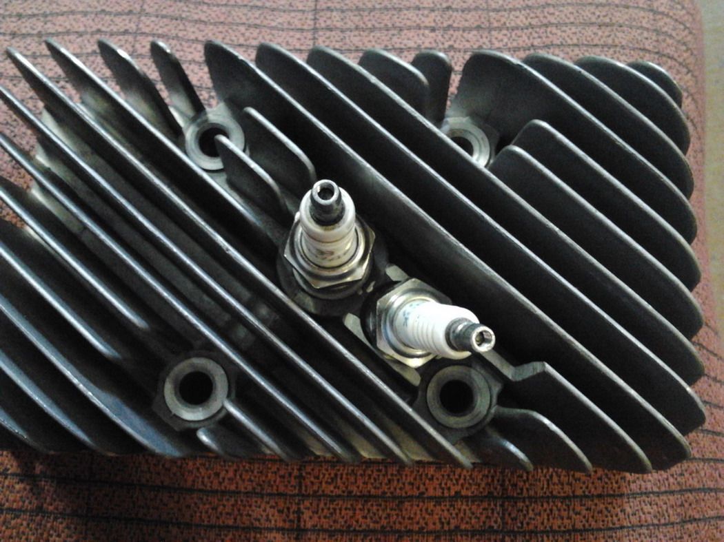 - сделать шарошкой в ребрах охлаждения гнездо под две свечи с учетом размеров свечного ключа и возможности "подлезть" ТИГовской горелкой;