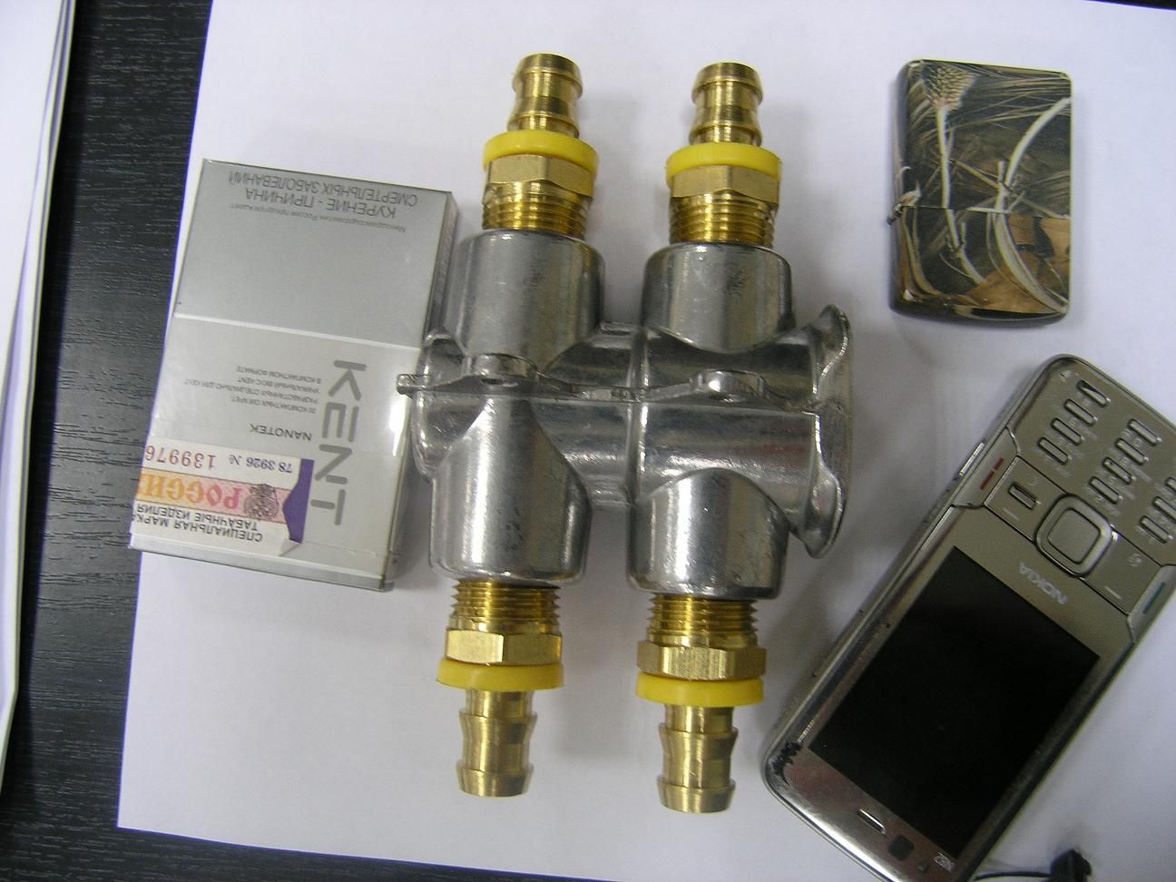Ну привез я этот девайс от хваленой буржуйской фирмы. Вес термостата 540 граммов , длинна с штуцерами пятнадцать сантиметров. Внутри стоит обычный элемент от автомобильной системы охлаждения, удерживает его в корпусе стопорное кольцо. Для сравнения вес Никитинского 150 граммов ну и размеры видно на фото выше. Если этот чугунный мост кому нужен то за две с половиной тысячи отдам. (цена без моржи). На мне и Женьке мы это пробывать не будем